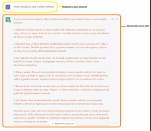 Una herramienta que se ha hecho muy popular es la llamada Chat GPT. En este chat podemos hacer cualquier pregunta y el bot nos la responderá, obviamente, nosotros preguntaremos sobre aspectos de la industria webcam.